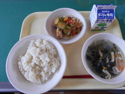 今日は日南産の新米でした。もちもちしていてとてもおいしくいただきました。