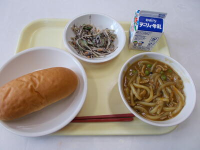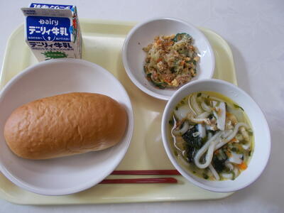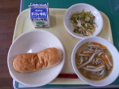 今日は給食にうどんが登場しました。出汁もきいて、とてもおいしかったです。