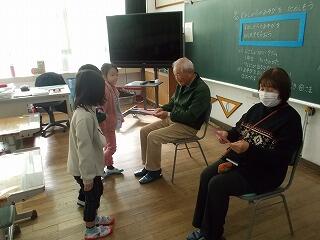 来てくださったのは、地域の高齢者の長尾一夫さん、地域学校協働活動推進員の野邊保美さんです。