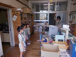 写真は、事務室の探検の様子です。