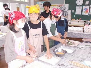 次に調理実習です。保護者の方や、南郷漁協女性部の皆さんにも、お手伝いいただきながら進めました。