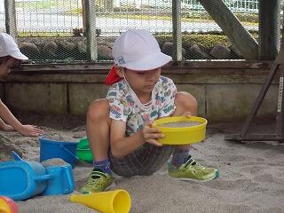 外は暑かったのですが、砂場の中は風が涼しく、楽しく砂遊びができたようです。