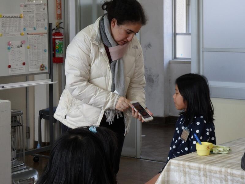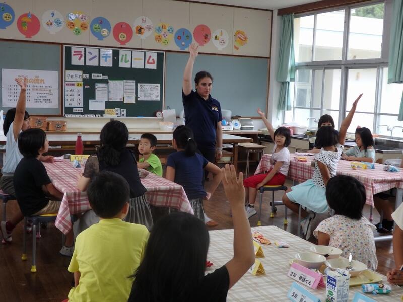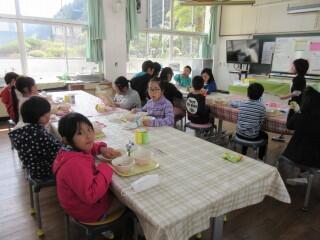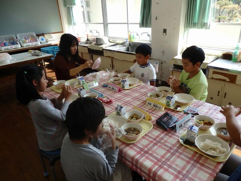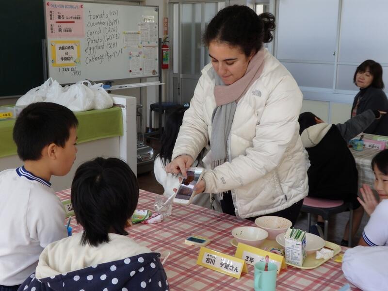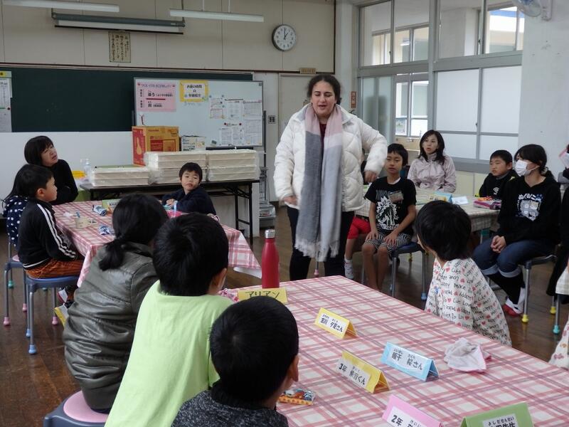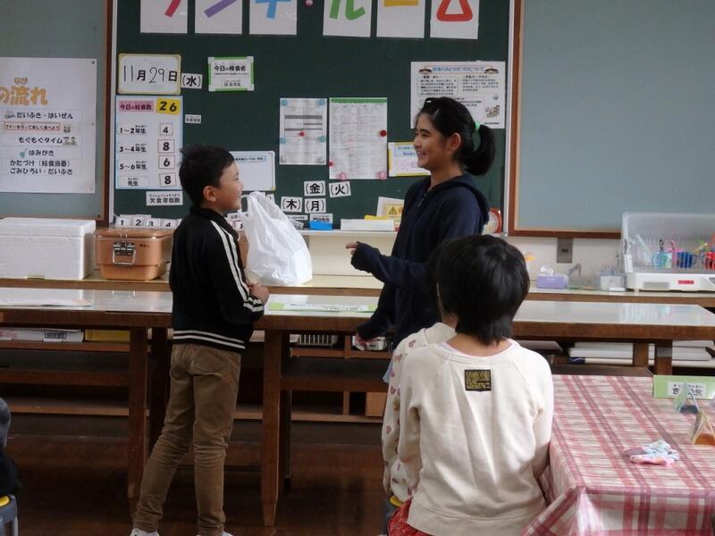 アリアン先生が来られた日は、一緒に給食を食べたあとに