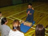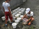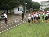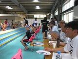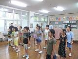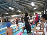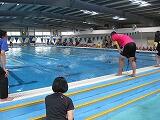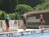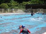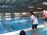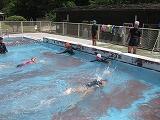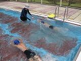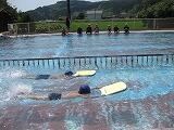 初泳ぎです。2・3年生は補助プール。4年以上は大プール。