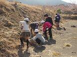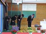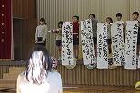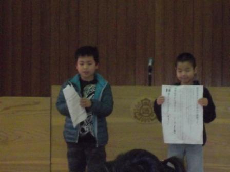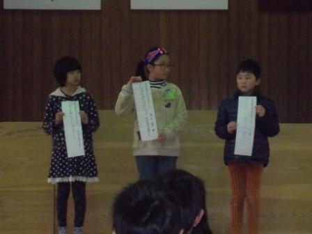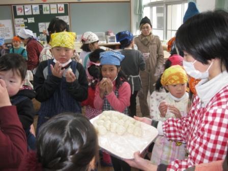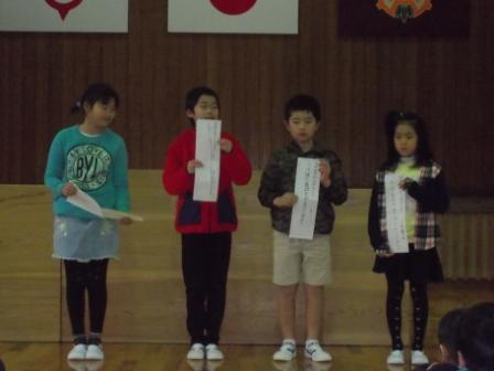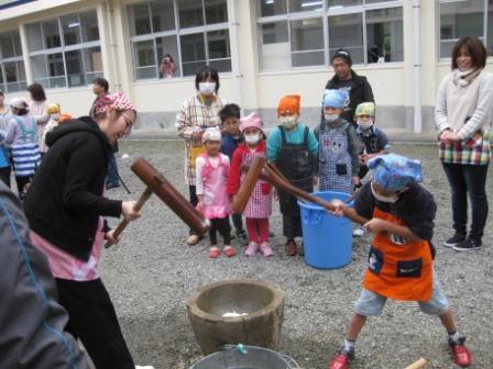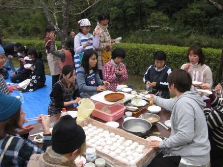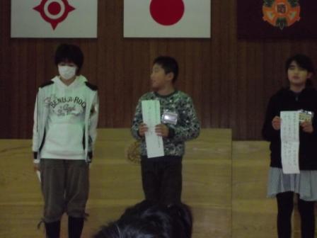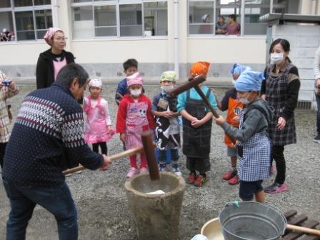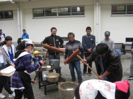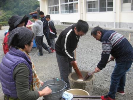 | 楽しいもちつき 酒谷小 4年 中村 健志 ぼくがもちつきで楽しかったことは、もちを丸めたところです。 まず、ふつうに丸めると、少しひびが入りました。ぼくは、ひびが入らないようにするためのこつを、地いきのおばあちゃんに教えてもらいました。 「ひびが入らないこつは、もちのはしを真ん中によせてから、 ひっくり返して丸めるときれいになるよ。」 と教えてもらいました。あと丸めたもちに、もちとり粉をふらないのもこつだと教えてもらいました。これまでの事をやってみると、ひびも入らずきれいになりました。 熱いもちをちぎるのもすごいなあと思いました。ぼくは、プロってすごいと思いました。こうやって楽しいもちつき大会が出来るのは、地いきの人の助けがあったからだと思いました。今年は、中学生が来てくれました。前日じゅんびも手伝ってくれました。ぼくは、そういう人に感しゃしています。ぼくは、大人になって酒谷小学校が残っていたら、手伝いに行きたいなあと思いました。来年も楽しみです。 |