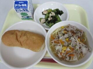 今日の給食 投稿日時 : 2015/11/18 学校管理者 減量米粉パン、コーンラーメン、えびとわかめのサラダ、牛乳 今日はコーンたっぷりのラーメンでした!にんじんやもやし、豚肉なども入っており具だくさんのラーメンでおいしかったです!サラダはいつもよりも大きめのエビが入っており、プリプリとしていました!よく味も染み込んでいておいしかったです♪〈1年女子〉小さいおかずにエビとわかめときゅうりが入っていてあじがおいしかった!