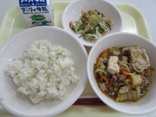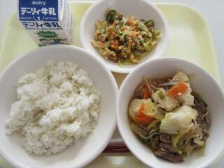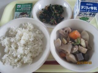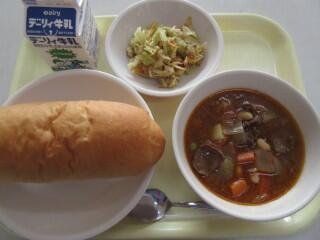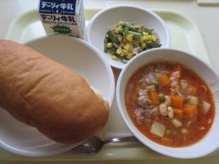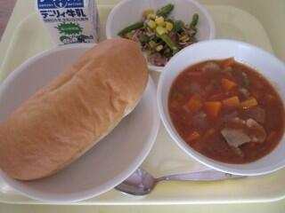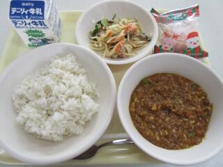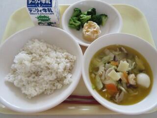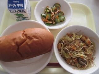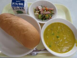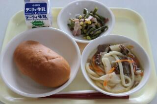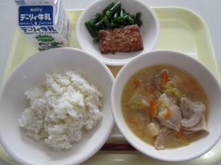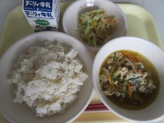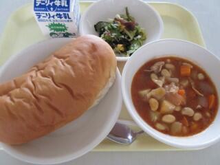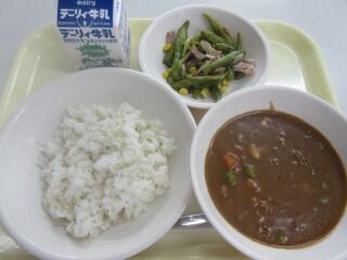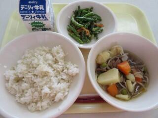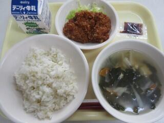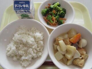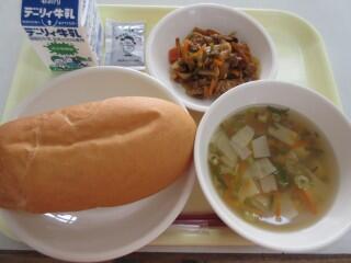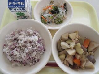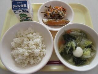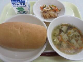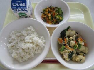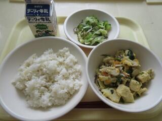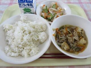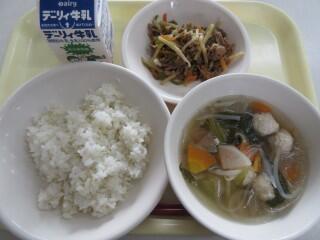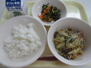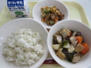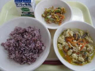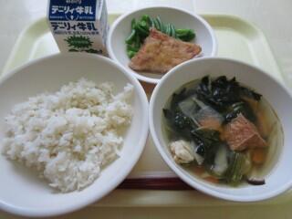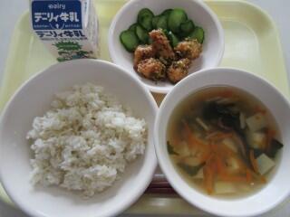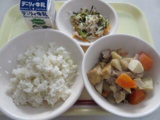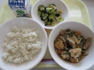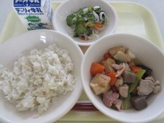 今日は、「ひむか地産地消の日」ということで、日南の海で水揚げされたシイラや、日南や宮崎で採れたチンゲンサイやキュウリ、しいたけなどが使われた給食でした!魚は1口サイズにカットして揚げてあり、その上から甘酢のきいたサラダをかけます。食欲が進むおいしさでした!