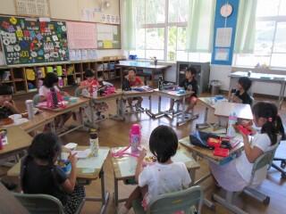 今日は午前中に稲刈りがあり、その後は「給食試食会」でした!たくさんの保護者の方に参加していただき、いつものランチルームがとても賑やかでした♪保護者の方々は普段はなかなか見ることのできない給食での子どもたちの様子を見ていただきながら、子どもたちと一緒に給食を楽しんでいただきました!子どもたちもお父さん・お母さんと一緒に給食が食べられてとても嬉しかったようです!