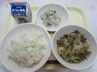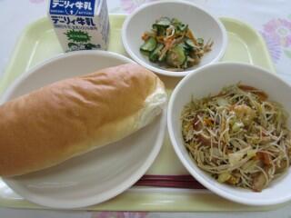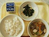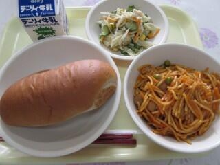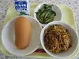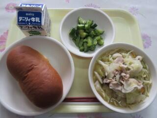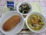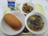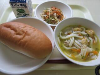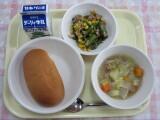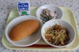 減量コッペパン、ほうとう、アーモンド和え、牛乳