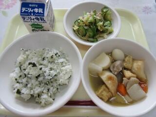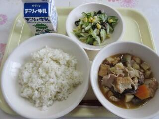 今日は、宮崎県の郷土料理「ぼったり汁」です。魚のすり身を使った汁で、すり身を鍋に“ぼたっ、ぼたっ”と落とすことから、こう呼ばれるようになったそうです。今日は、いかだんごの入った「いかのぼったり汁」です。こくのあるだしで、とてもおいしくいただきました。