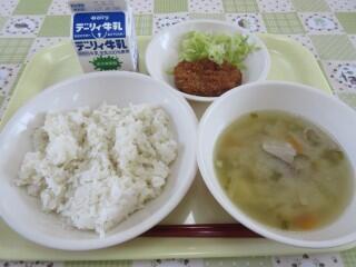 今日のとんかつは調理員さんの手作りで衣をつけて揚げています。子どもたちは給食でとんかつが出るということに喜んでいました!サクサクしていて、おいしかったです。