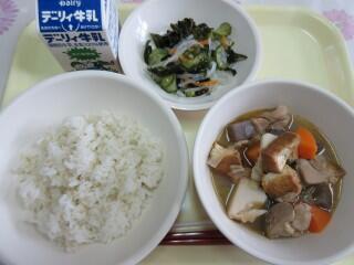 今週の給食感謝週間に合わせて、今日は酒谷小学校のリクエスト献立でした!鶏肉のレモン煮は、レモンの香りとさっぱりとした甘酸っぱい味が食欲をそそります。自分たちで選んだメニューで、デザートも付いて、子どもたちも大喜びでした。