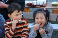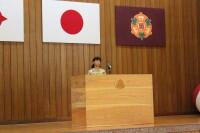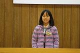小川さんは「努」学習面、生活面で努力を続け、がんばる1年にしたいと、きっぱりと発表してくれました。
