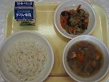 豚肉と茄子の味噌炒め、けんちん汁、麦ご飯、牛乳