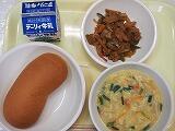 豚肉のケチャップいため、コーンスープ、コッペパン、牛乳