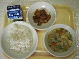 豚の角煮、すいとん、麦ご飯、牛乳