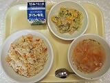 チーズピラフ、フレンチサラダ、オニオンスープ、牛乳