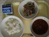 ハヤシライス、ひじきとごぼうのサラダ、麦ご飯、牛乳
