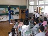 着衣泳指導 投稿日時 : 2012/07/19 学校管理者 7月19日(木)、全校で着衣泳の指導を行いました。 長袖、長ズボン、靴を着用し、水慣れで入水した 子ども達の 第一声は「お、泳ぎにくい!!」 「背浮き」に挑戦しましたが、 はじめは腰が曲がって沈む子も多かったのですが、 ほとんどの子がしっかり浮くことができました。 その後ペットボトルを抱え、浮力を感じることもできました。 実技指導だけでなく、「おぼれそうになったらどうするか」 「おぼれている人を見たらどうするか」についても考えることができました。