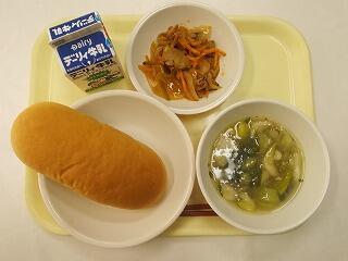 先日の台風の影響で、ご飯からパンに変更されたメニューでしたが、豚肉のケチャップ炒めがパンによくマッチしていて、おいしくいただきました。