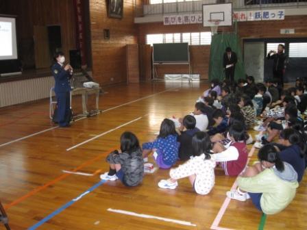 説明をじっと聞き入る子どもたち 千羽鶴を届けました