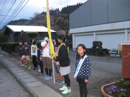 7時出発予定でしたので、6時50分頃から出発式を行いました。