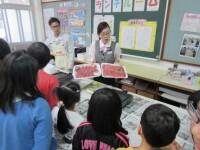 11月20日(金)5・6校時に「モーモー教室」が行われました。生産者の河野さん、経済連の緒方さん、岩切さんに来校していただきました。まず5校時にはDVD「追跡!宮崎牛~おいしさのヒミツ~」を鑑賞したり、パワーポイントで宮崎牛について勉強したりしました。牛肉の生産状況や命の大切さを学びました。6校時には「宮崎牛と外国産牛肉の食べ比べ」がありました。見た目やにおい、かたさ、味、脂を比べながら食べました。以下、子どもたちの感想を紹介します。