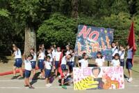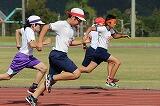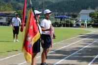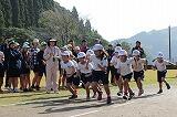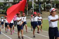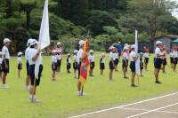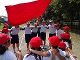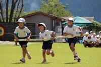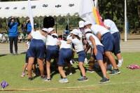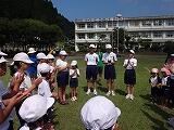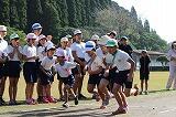 本校は、酒谷児童館と、酒谷中学校との合同運動会です。小学生は、中学生の指導のもと、各団とも、応援に競技に、盛り上がっています。