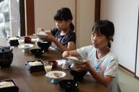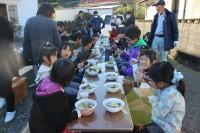 その後は打ちたてのそばをみんなで食べました。猪肉や大根がやわらかく煮込んであるものがそばの具となり、とてもおいしいだしでした。自分たちで打ったそばは大きさがバラバラでしてが、格別においしかったようで、笑顔がたくさんこぼれていました。