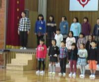 本日、2月の全校朝会を行いました。月の歌「ひまわりの約束」を体を揺らしながら元気な声で歌いました。