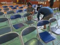 本日の午後、3年生以上は学習発表会の準備でした。体育館のシート敷きやパイプイス並べなどの会場設営です。少ない人数だからこそ、みんなで協力して行いました。準備万端です。