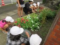 今日は業前に「クリーン活動」がありました。6月にみんなで植えたニチニチソウやトレニアなどとても大きくなりました。花をかき分けながら草抜きをしました。