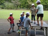 避難後に消防士の話を聞き、火事の原因として多いタバコの不始末や料理中の油断、火遊びなどをしない・させないことが大切であるということを学びました。その後、消防車を近くで見せていただいたり、防火服や酸素ボンベを担ぐ体験もさせていただきました。