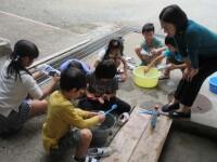 本日5校時、1・2年生は生活科の授業でシューズ洗いに挑戦しました。これは、家族の一員として自分のできることを考え、進んで自分の役割を果たすことができることをねらいにしたものです。2年生は去年習っているせいか慣れた手つきで洗えていました。1年生も力を入れながら一生懸命がんばっていました。「におったらくさかったけど、あらったらきれいになったのでうれしかったです♪」という感想がありました。