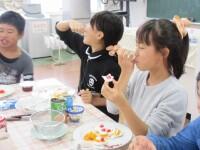 本日5・6校時、4~6年生のクラブ活動がありました。2チームに分かれ、「スイートポテト」と「カナッペ」を作りました。チームのみんなで協力しながら、楽しく作ることができました。いいにおいにつられて、1・2年生がのぞきに来て「いいな~おいしそう♪」とニコニコしながら言っていました。