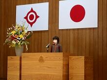写真は児童代表あいさつと校歌斉唱の様子です。