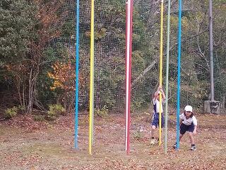 1・2年生は、グラウンド上の落ち葉を拾いました。