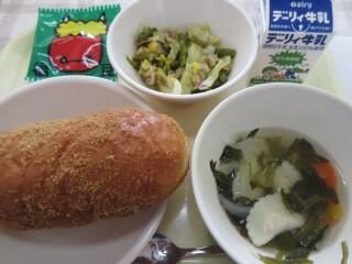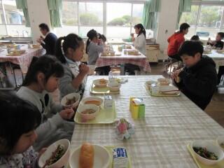 スープの中にはかわいいマカロニが入っていて、「タイヤの形に見える!」「ハンドルみたい!」「雪の結晶みたい~!」と楽しんで食べていました♪
