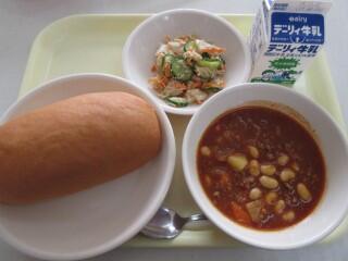 今日は、「ひむか地産地消の日」ということで、日南の海で水揚げされたシイラや、日南や宮崎で採れたチンゲンサイやキュウリ、しいたけなどが使われた給食でした!魚は1口サイズにカットして揚げてあり、その上から甘酢のきいたサラダをかけます。食欲が進むおいしさでした!