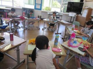 「お月見のときにお供えするものは?」と聞くと「だんご!!」「ススキ!!!」と元気に答えてくれました!じゃあ、なんで団子とススキをお供えするのか聞くと首をひねる子どもたちです!お米などが収穫できたことを祝い、感謝するために、稲穂に見たてたススキと、収穫したお米でできた団子をお供えします!それに加えて、「秋の七草」で彩りを添えることもあります!