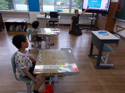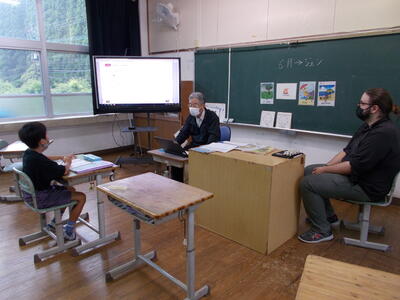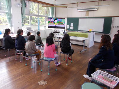 写真は5,6年の外国語の様子です。少人数での指導でしっかりと学んでいます。