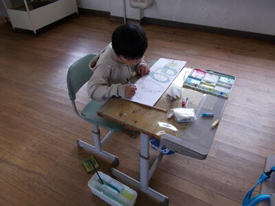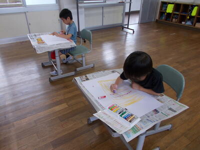 田植えの時の様子を思い出しながら、クレヨンを使って、楽しそうに描いていました。