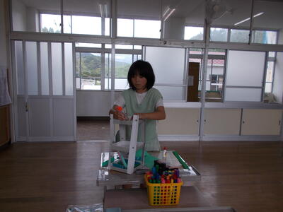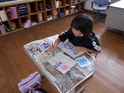 1年生の教室をのぞいてみると、田植えの時の様子を絵に描いていました。