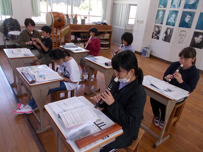 3~6年生は、その学年に応じた曲をリコーダーで吹けるように練習していました。