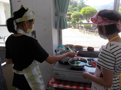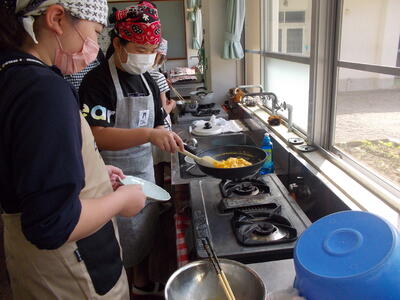 ほうれん草やジャガイモをゆでたり、卵やウィンナーを炒めたりして、最後はみんなで試食していました。
