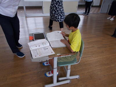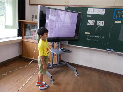 ※写真は1年生がデジタル教科書を使って、算数の復習をしている様子です。