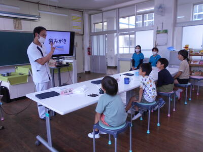 6月9日に歯科検診後、1年から4年の児童を対象に歯磨き指導を行いました。