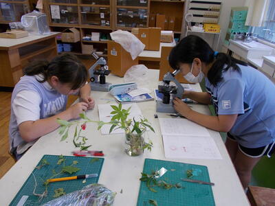 葉の裏側にある「気こう」(水がでる穴)を顕微鏡を使って観察していました。