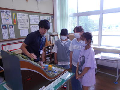 日南土木事務所の方々が映像や模型を使って丁寧に教えてくださいました。