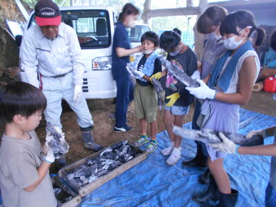 村おこし協議会の皆様から説明を聞き、炭作りの苦労などを理解できました。